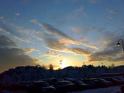 Some days a bit of window shopping gives results. I have wanted a new purse for a while. Not because my current one is bad, but simply because I wanted something a tad smaller, a bit classier - and not black. Like red. As I browsed the handbag and luggage store, I eavesdropped on the conversation the clerk had with other shoppers. Black is the most popular color, regardless of fashion, I learned. Meh, I knew that. Norwegians would make Johnny Cash proud. Which is why I wanted color. I posed with gray, with gray-blue, with purple against my black (!) coat and black (!!) boots. Nothing felt right. Kelly green and road-sign yellow were out of the question. I put all the handbags back. I was disappointed in not finding anything I really liked, but reluctant to leave the store, empty-handed. There were many nice, appealing handbags, but they were black. I fought temptation and old habit, determined to have any color but black! I circled the racks again. I crossed over to one other...